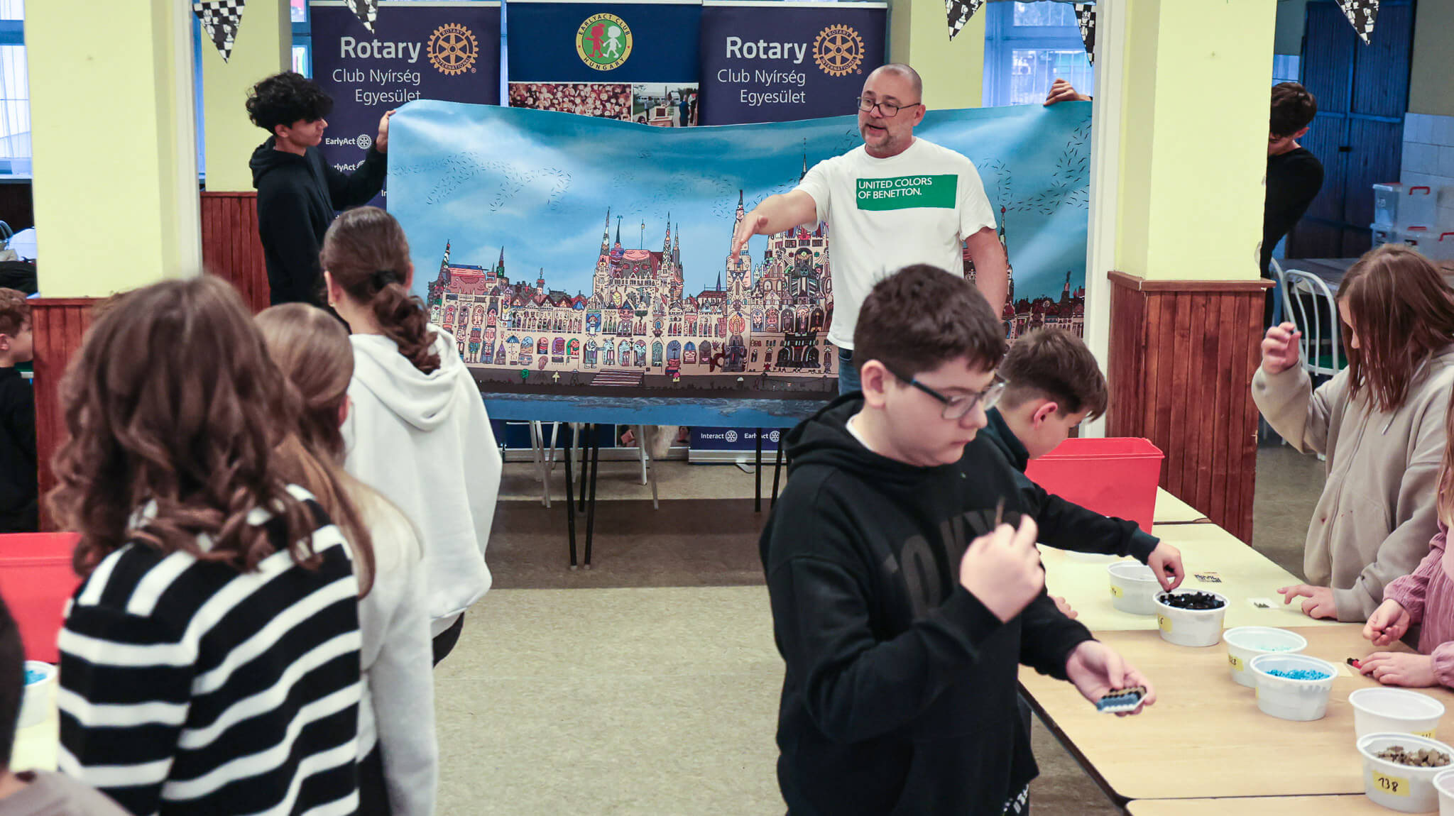 A különleges eseménynek az EarlyActosok iskolája, a Kazinczy Ferenc Tagintézmény adott otthont, ahol közösen helyére került 28 000 LEGO darab. Az építés közben jó hangulat, vidám beszélgetések és új barátságok születtek – igazi csapatmunka volt, a Rotary-család minden generációjának összefogásával.